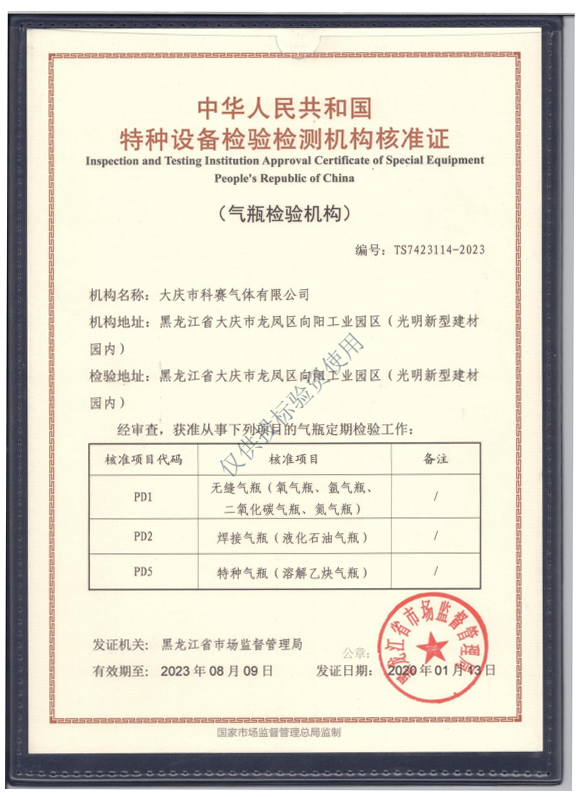中华人民共和国特种设备检验**机构核准证